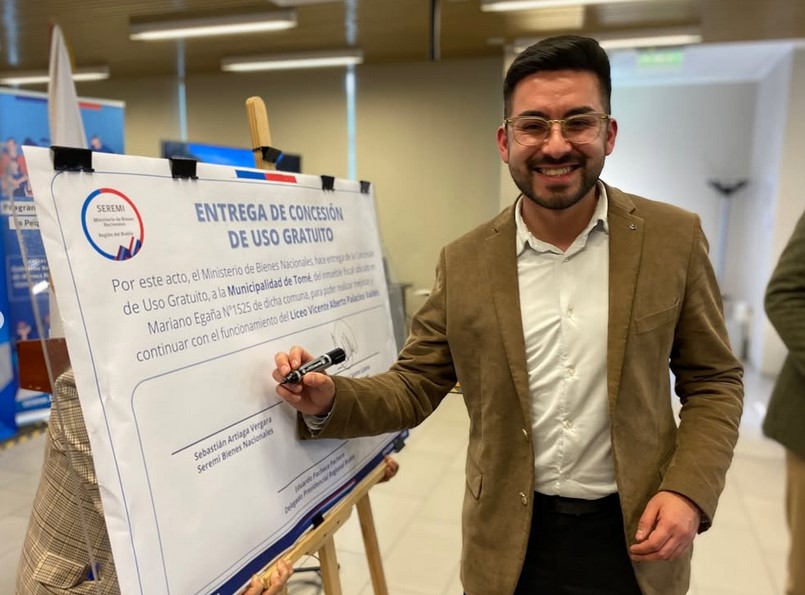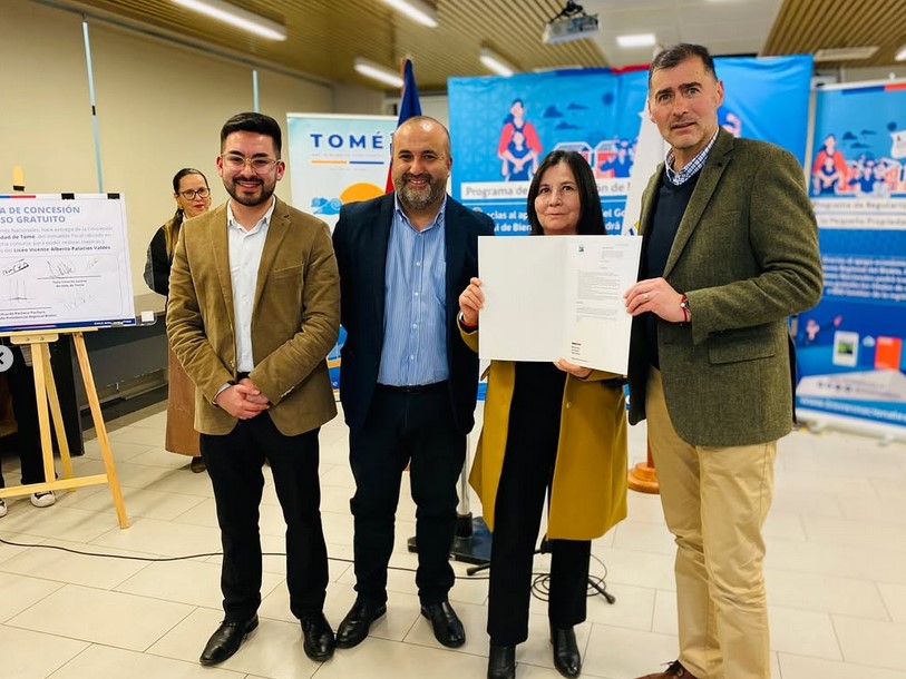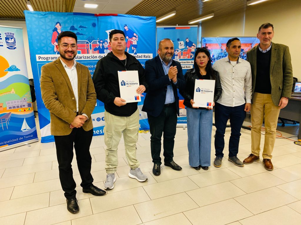 ceremonia liderada por el Seremi de Bienes Nacionales, Sebastián Artiaga Vergara, quien en compañía del Delegado Presidencial Regional Biobío, Eduardo Pacheco Pacheco, y del Alcalde de Tomé, Ítalo Cáceres Lizana, hicieron entrega de esta importante documentación que se traduce en certeza y seguridad jurídica de vivir en lo propio.