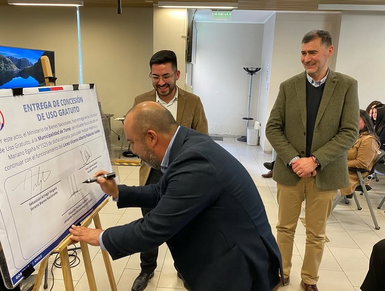 luego de recibir la concesión de uso gratuito –por 5 años- del inmueble fiscal que alberga el Liceo Vicente Alberto Palacios Valdés; institución emblemática que acoge a cerca de 700 estudiantes de la comuna y que, en junio, celebró su aniversario número 120.