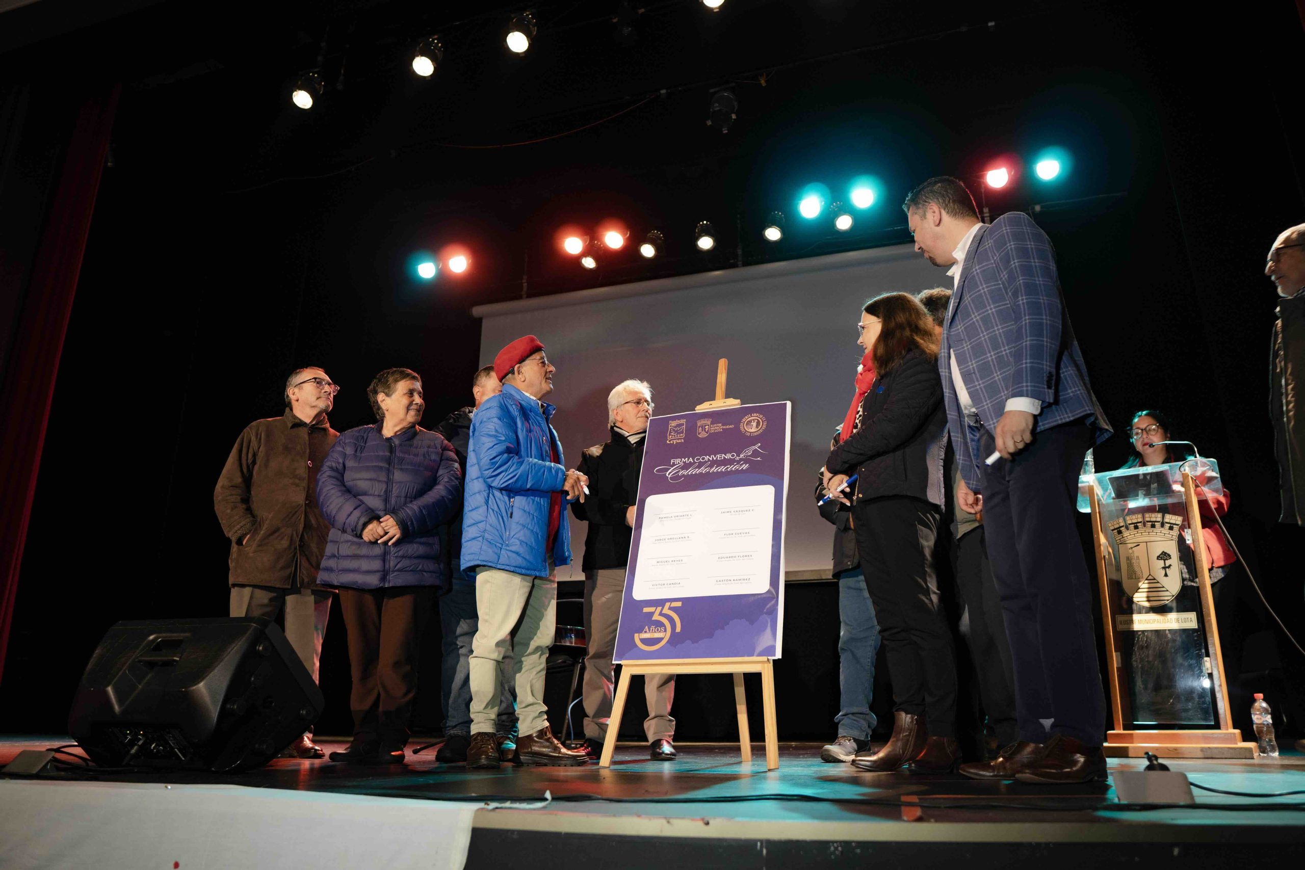 La emotiva jornada se llevó a cabo en el emblemático Teatro de Lota, donde se destacan las siglas CCIL en la máscara del escenario, un recordatorio de la época de la Compañía Carbonífera Industrial Lota, cuando se realizaban importantes asambleas con cientos de mineros ante el inminente cierre de las faenas. El evento de hoy estuvo marcado por discursos llenos de significado y contó con la presencia de cerca de doscientos mineros del carbón y sus familias, quienes recibieron con entusiasmo los anuncios sobre el beneficio vitalicio.