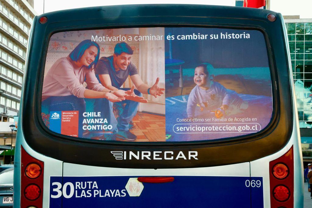 A raíz de lo anterior, es que la Seremi de Desarrollo Social y Familia, a través del SPE y en colaboración con la Seremi de Transporte y Telecomunicaciones, a través de las rutas de transporte Las Galaxias y Ruta Las Playas difundirán en sus lunetas la campaña que llama a ser Familia de Acogida.