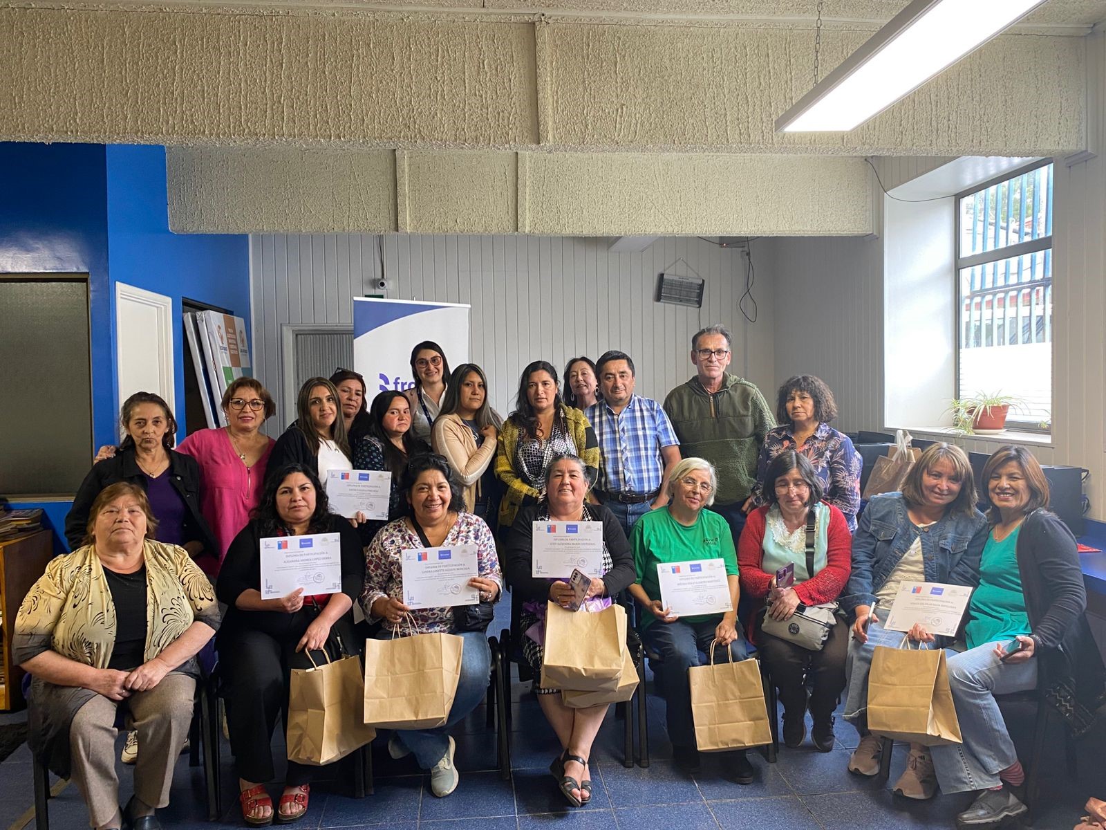 Con mucha alegría, 18 vecinos y vecinas de Lota, que participaron en el curso de alfabetización digital, recibieron su diploma por haber finalizado con éxito esta capacitación que impartió la OTEC Arrayán en alianza con Frontel.