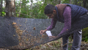 En esta fase crucial para el proyecto, se incorporan actores comunitarios locales, aportando sus conocimientos y habilidades para fortalecer el proceso de recolección, una tarea que comenzó previamente con la instalación de trampas para capturar semillas en