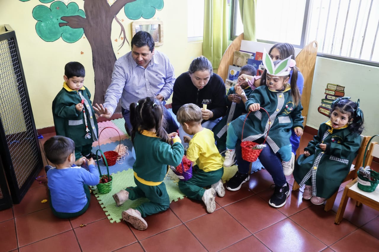 Ya es una tradición que en pascua de resurrección, huevos de chocolate sean escondidos en las distintas casas y que éstos sean buscados por los niños y niñas que disfrutan de esta entretenida jornada, en ese contexto es que el Seremi de Desarrollo Social y Familia, Hedson Díaz Cruces y junto a la Oficina Local de la Niñez de Penco visitaron el jardín infantil La Cuncunita en el sector Cosmito, en donde entregaron huevos de pascua a niños y niñas usuarias de este jardín.