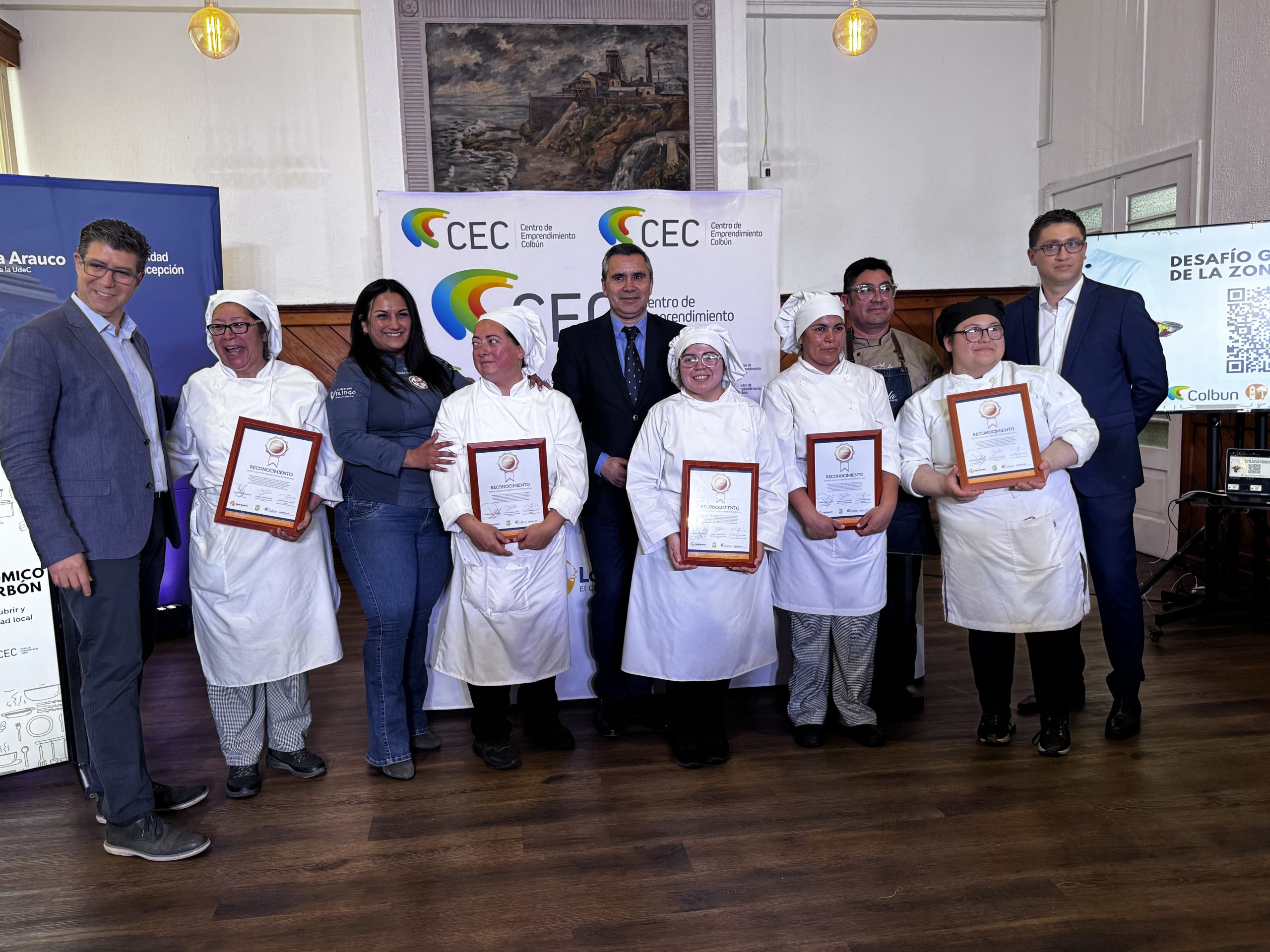 El Desafío Gastronómico contó con un jurado de alto nivel compuesto por Félix Perera; Marcelo Díaz Bowen, director del Centro de Emprendimiento Colbún; y Valeska Faúndez, chef y dueña del restaurante Vikingo, de Caleta El Blanco. La actividad convocó además a autoridades comunales y regionales, representantes de la Corporación Educacional UdeC y de la empresa Colbún.