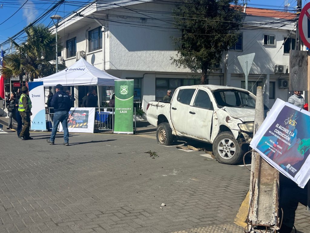 En el marco de las celebraciones de Fiestas Patrias y con el objetivo de generar conciencia sobre la prevención de accidentes de tránsito, se realizó, en calle Balmaceda de Laja, una impactante simulación de accidente vehicular que recreó el choque de una camioneta contra un poste del tendido eléctrico. En la instancia, participó Carabineros, Bomberos, personal del Servicio de Atención Médica de Urgencia (SAMU), Municipalidad de Laja y Frontel, con un llamado, para celebrar con responsabilidad. La simulación permitió mostrar a la comunidad cómo se articulan los distintos equipos de emergencia ante este tipo de situaciones y, sobre todo, reforzar el llamado a la responsabilidad al conducir, especialmente en fechas donde el consumo de alcohol y la circulación aumentan considerablemente.