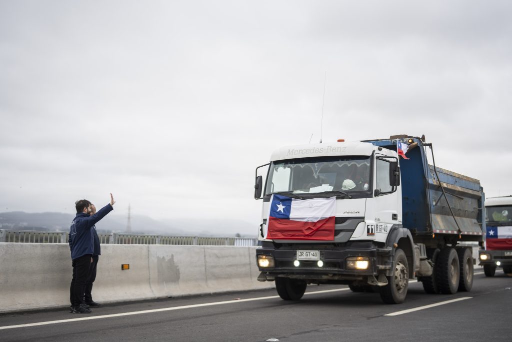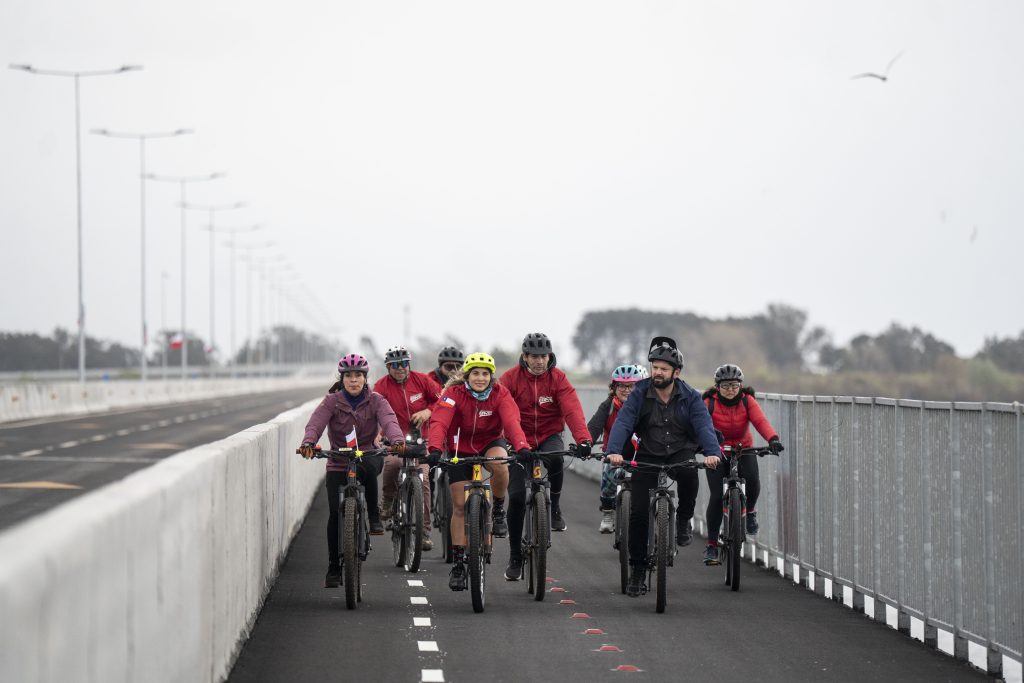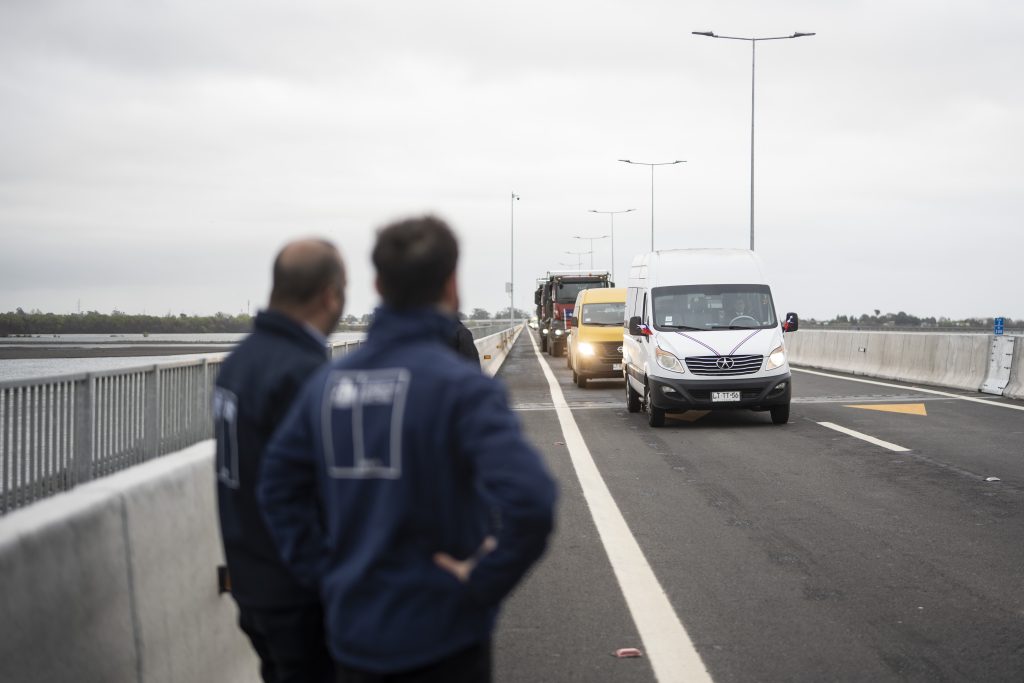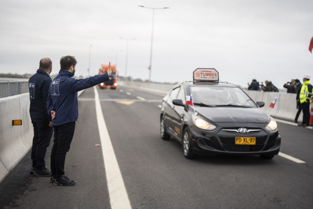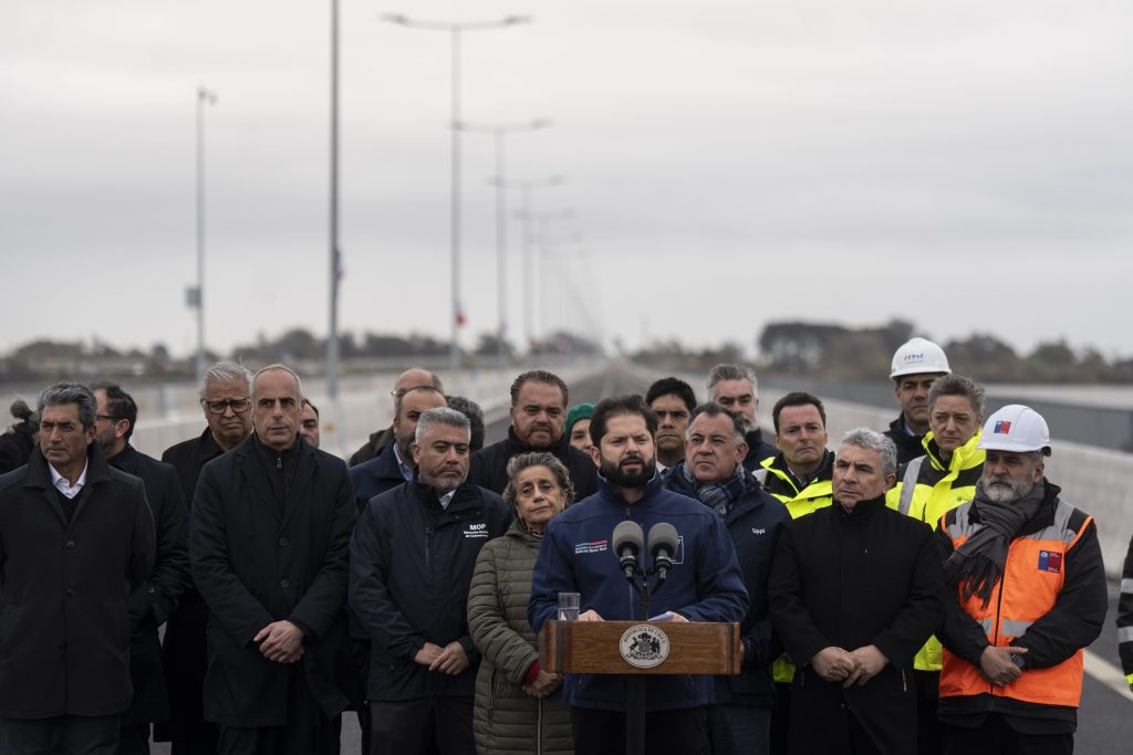 El Presidente de la República, Gabriel Boric Font, encabezo el hito de apertura para la puesta en marcha del Puente Industrial, nueva conexión vial entre las comunas de San Pedro de la Paz y Hualpén en la Región del Biobío, junto a la ministra de Obras Públicas, Jessica López; el ministro de Transportes y Telecomunicaciones, Juan Carlos Muñoz; el gobernador de la Región del Biobío, Sergio Giacaman; el delegado presidencial regional del Biobío, Eduardo Pacheco; el presidente de la Asociación de Municipalidades de la Región del Biobío y alcalde de Hualqui, Ricardo Fuentes; el alcalde de San Pedro de la Paz, Juan Pablo Spoerer; y el alcalde de Hualpén, Miguel Rivera.
