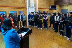 En la inauguración, se destacó la participación activa de los estudiantes del electivo de arte del Colegio Adventista de Lota, quienes interactuaron con los artistas mediante preguntas y comentarios.