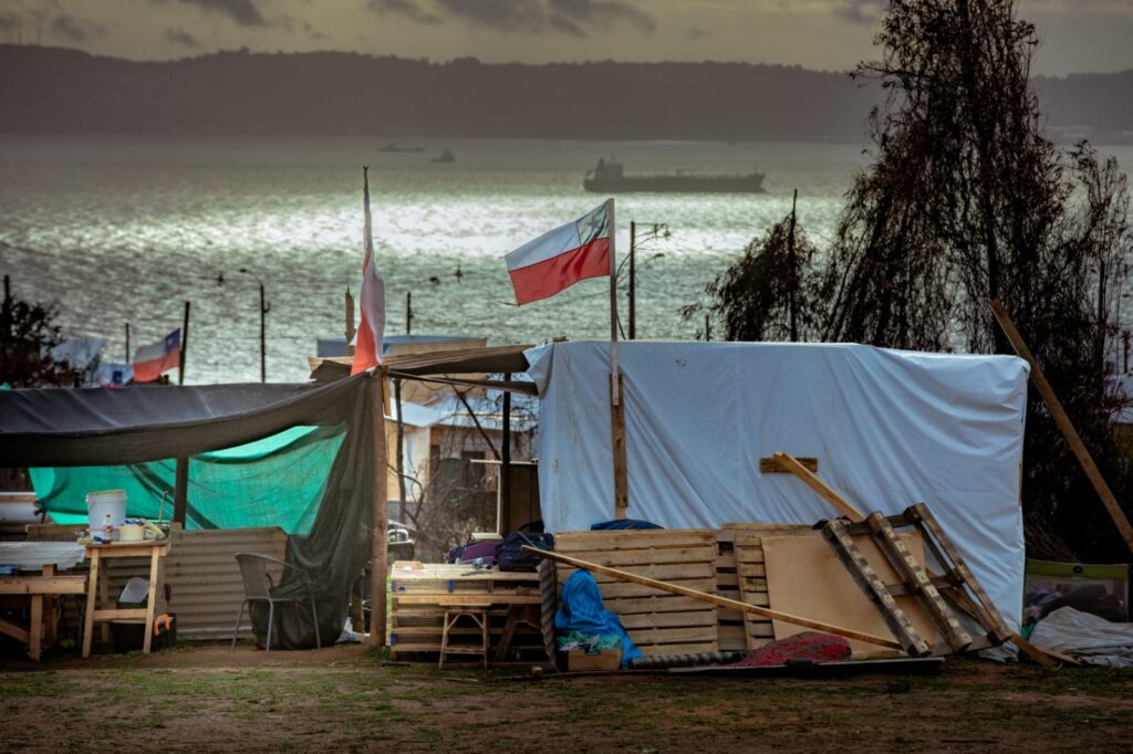 Con la bahía de Talcahuano de fondo y mientras se ocultaba el sol, el Ministro trazó líneas junto con los vecinos para pasar lo antes posible de la emergencia al proyecto de reconstrucción definitivo.